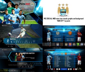 PES 2013 ALL MOD menu icon visuals graphic and background “MANCHESTER CITY” Download Links (Rapidshare, Gamefront, Mediafire) :